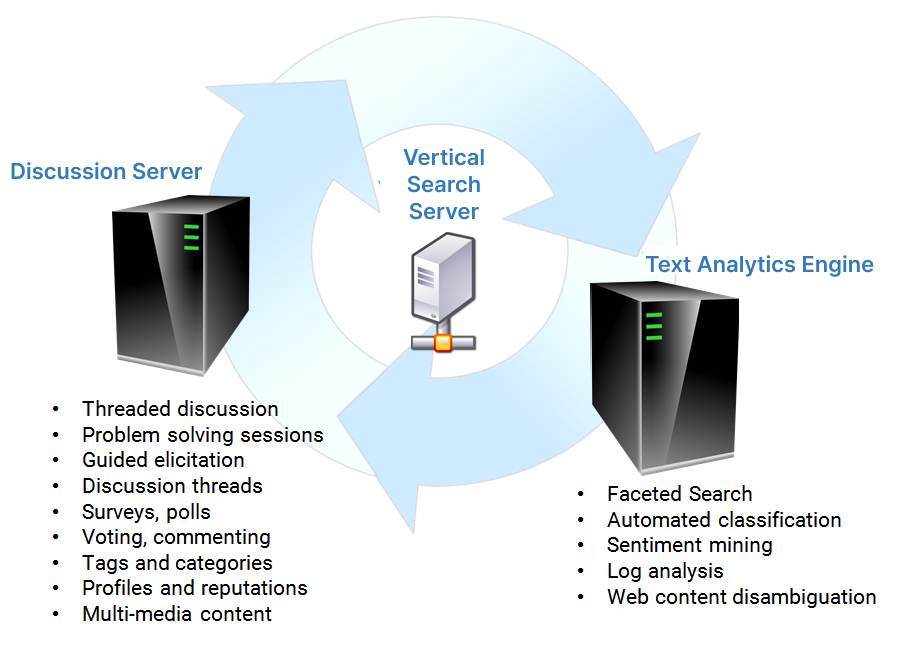 Topic Community platforms and Group Intelligence software can be deployed with popular open-source software and cloud services: Apache, ElasticSearch, Hadoop, Spark, AWS LAMP stacks, NginX, Lime, React, etc.
